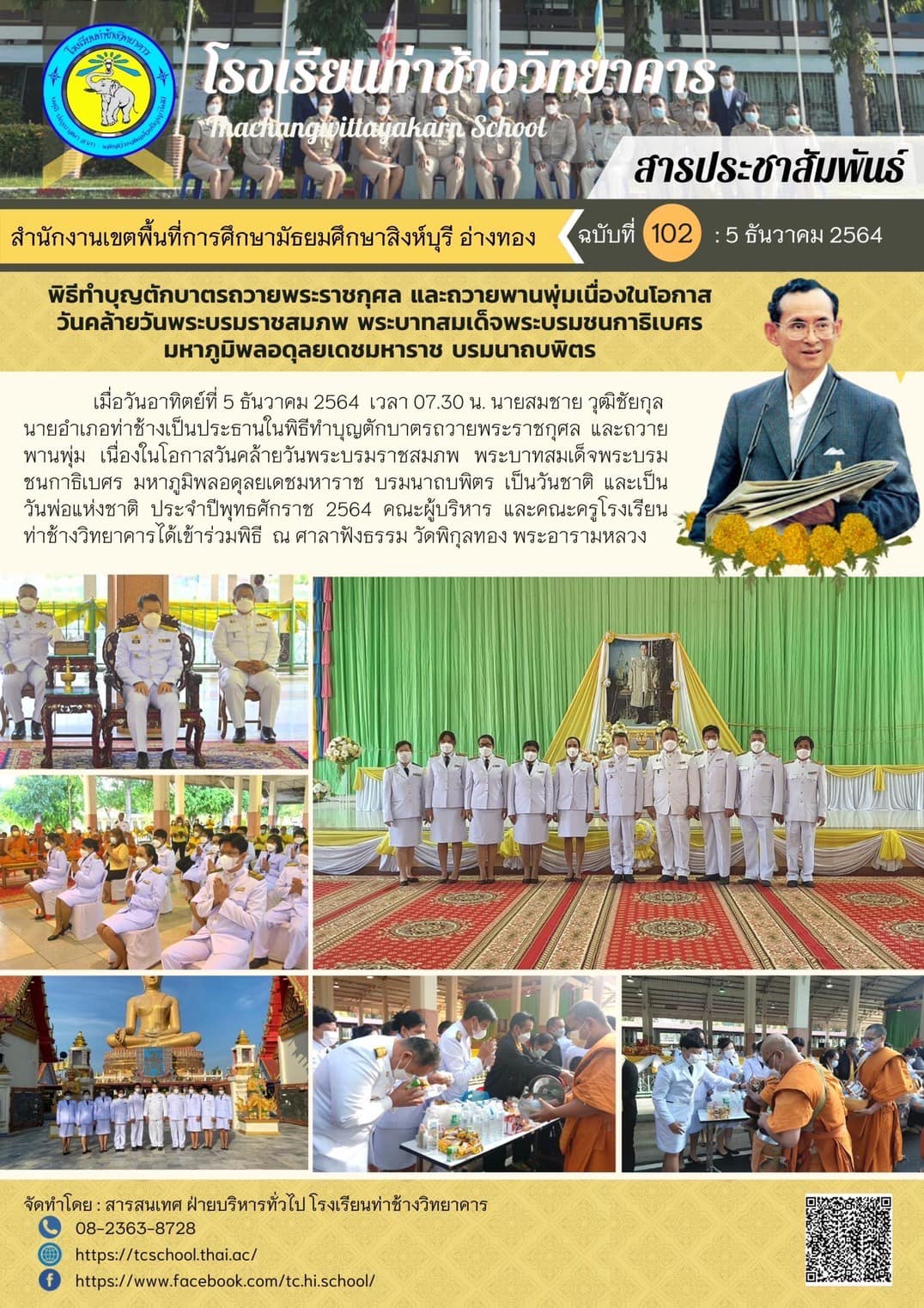 พิธีทำบุญตักบาตรถวายพระราชกุศล และถวายพานพุ่มเนื่องในโอกาส วันคล้ายวันพระบรมราชสมภพ พระบาทสมเด็จพระบรมชนกาธิเบศร มหาภูมิพลอดุลยเดชมหาราช บรมนาถบพิตร