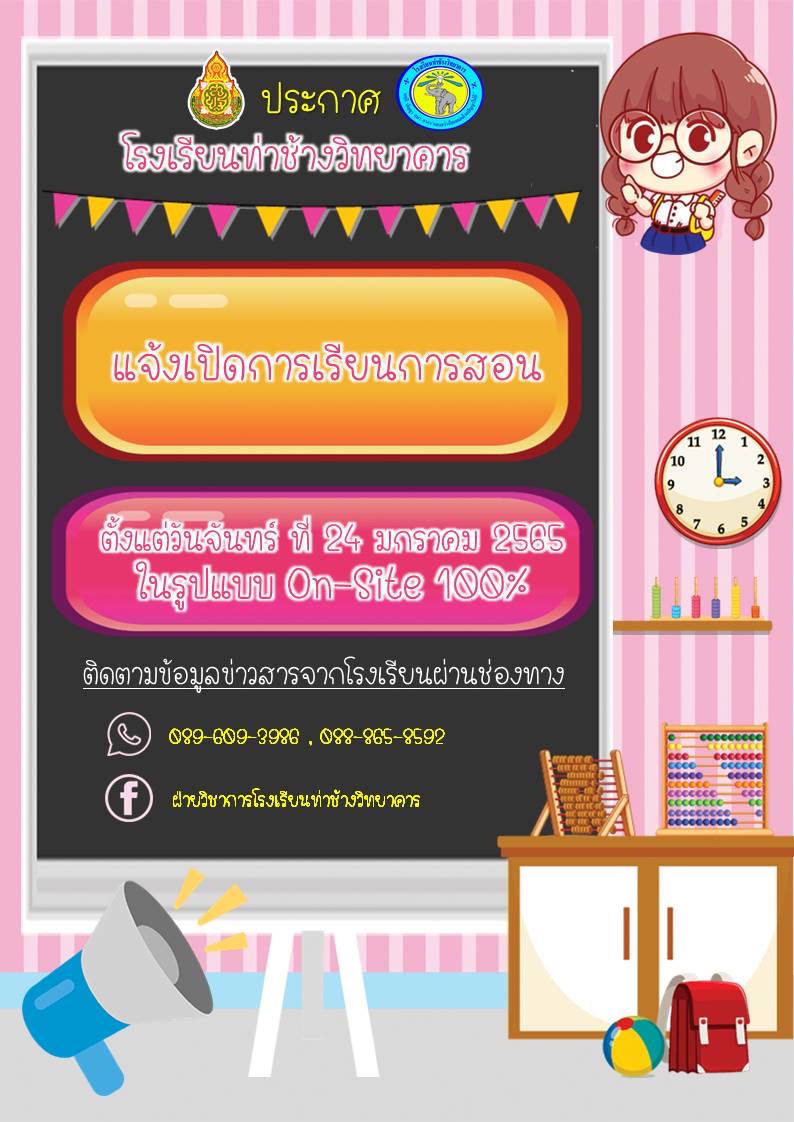 ประกาศเปิดเรียน On-Site ทุกระดับชั้น